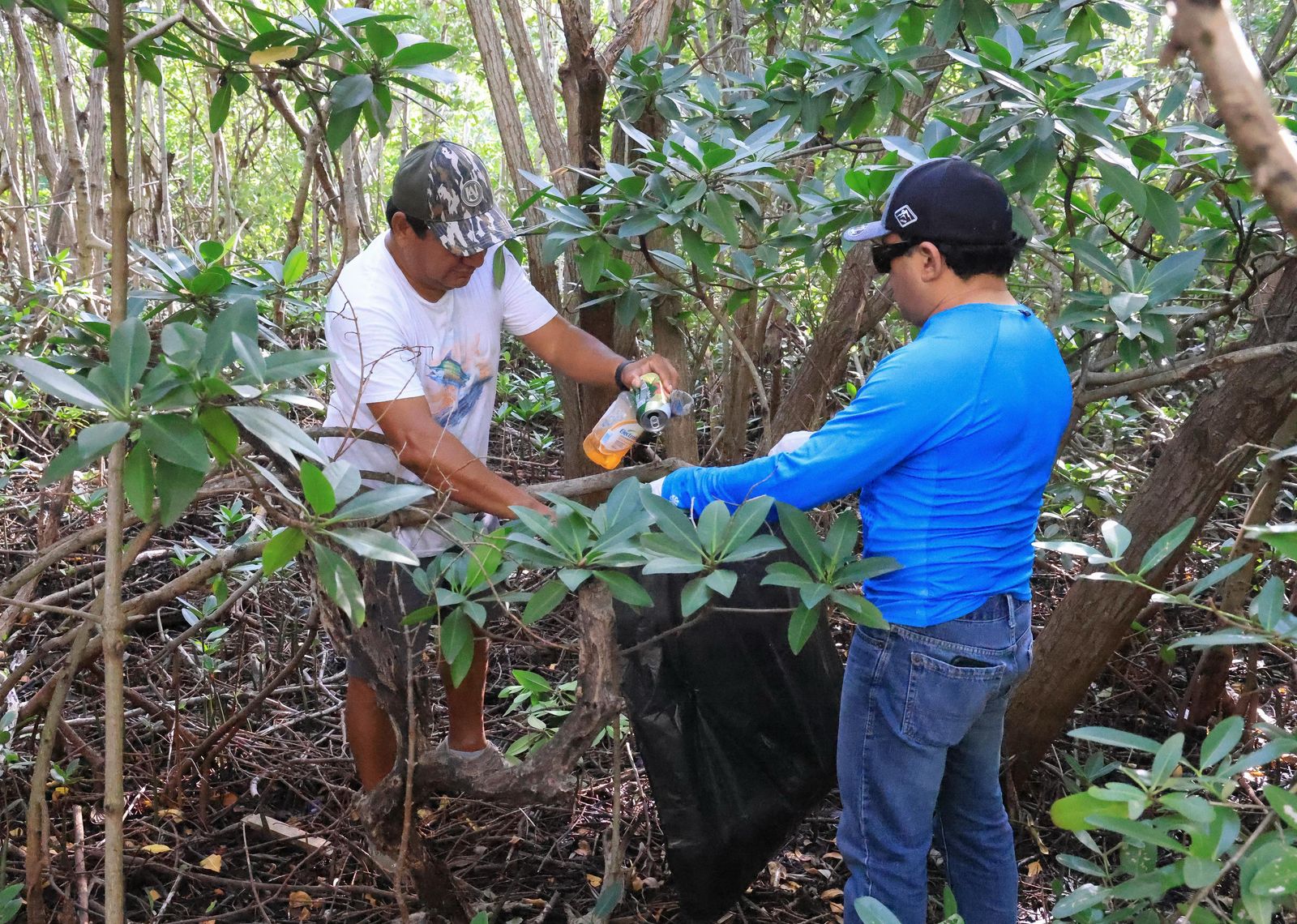 Personal de distintas áreas del Ayuntamiento emprendió la jornada del Limpiatón en la zona de mangle de Sac-Bajo, con limpieza profunda, pintura de guarniciones y acciones de descacharrización.