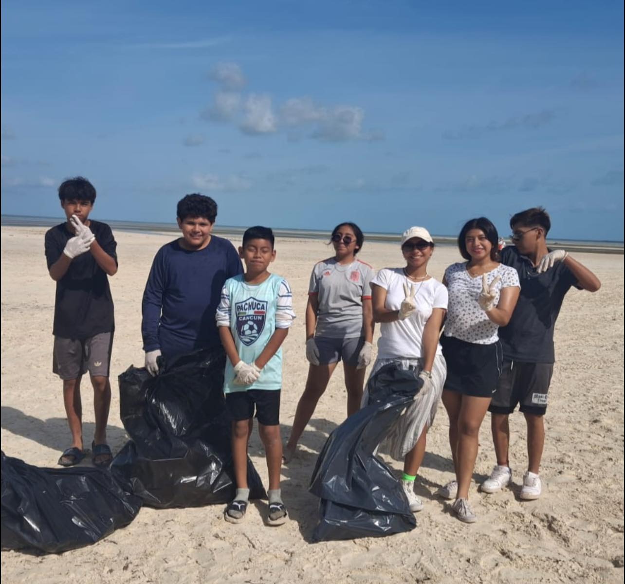 En Isla Blanca, participaron cerca de 50 jóvenes voluntarios, quienes se sumaron para reforzar la limpieza que todos los días se realiza a través de la Zona Federal Marítimo Terrestre (ZOFEMAT) Isla Mujeres.