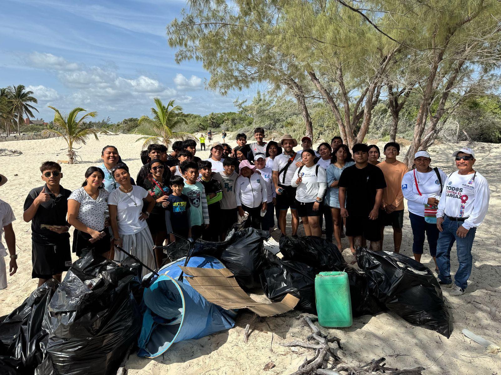 En Isla Blanca, participaron cerca de 50 jóvenes voluntarios, quienes se sumaron para reforzar la limpieza que todos los días se realiza a través de la Zona Federal Marítimo Terrestre (ZOFEMAT) Isla Mujeres.