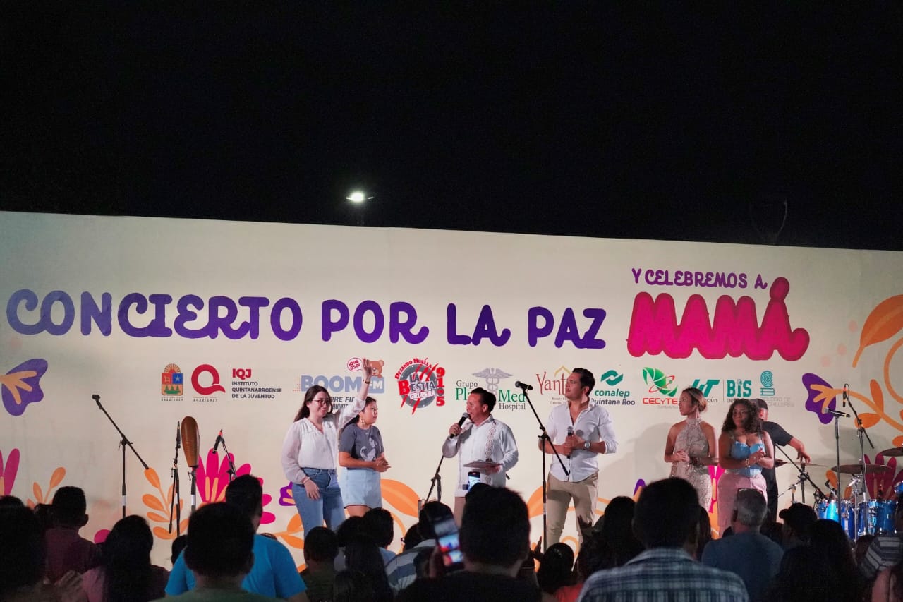 Cancún. – El Gobierno del Estado de Quintana Roo a través del Instituto Quintanarroense de la Juventud(IQJ), encabezado por Alma Alvarado Moo, llevó a cabo el Concierto por la Paz en el Domo del Toro Valenzuela de Cancún, en el marco de la conmemoración del Día de las Madres.