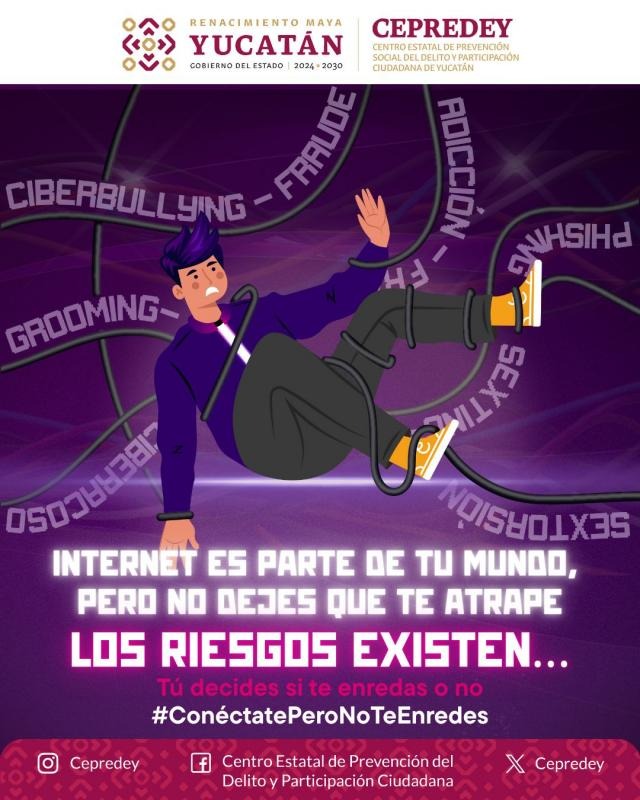 Para fomentar el uso seguro y consciente de internet entre adolescentes y jóvenes, el Centro Estatal de Prevención Social del Delito y Participación Ciudadana de Yucatán (Cepredey) lanzó la campaña digital #ConéctatePeroNoTeEnredes, una estrategia preventiva orientada a promover la reflexión, el autocuidado y el ejercicio responsable de la navegación en redes sociales.