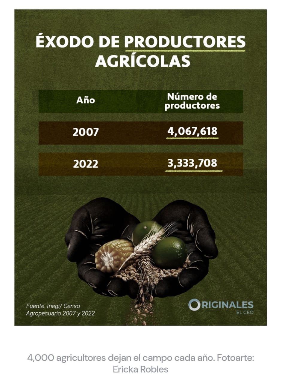 Según censos oficiales, cada año cerca de 49,000 agricultores abandonan el campo en México y ello provoca poner en Riesgo la autonomía alimentaria del país.