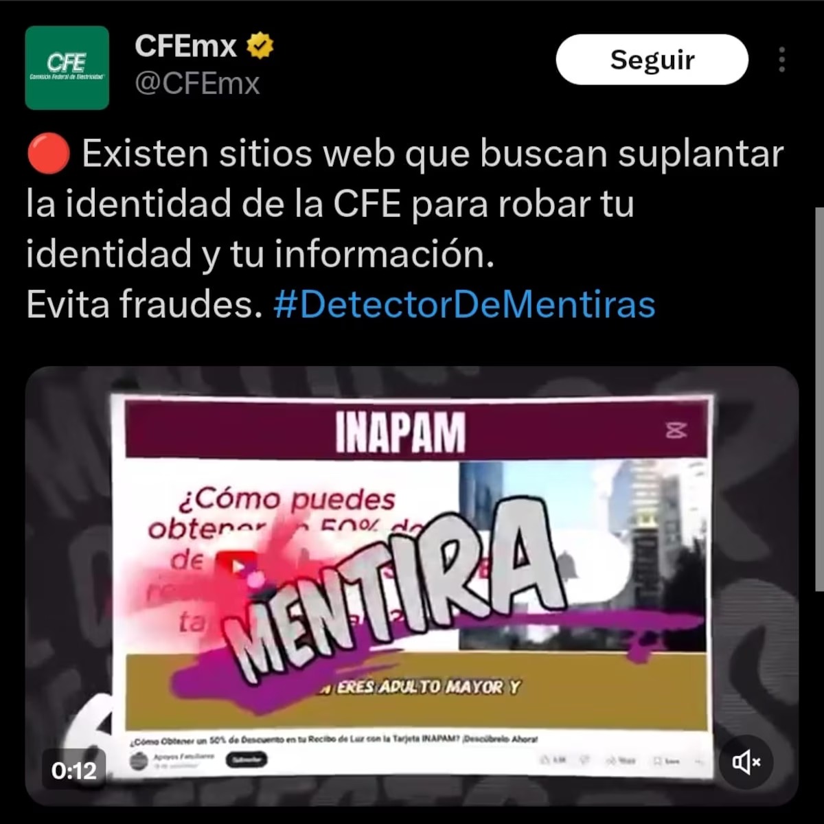 En ese sentido, la propia CFE ha reiterado que no ofrece descuentos especiales por medio de redes sociales ni solicita pagos previos para aplicar beneficios. Además, todas las gestiones y consultas deben realizarse a través de sus plataformas oficiales para garantizar la seguridad de los usuarios. Estas advertencias han quedado materializadas en una serie de publicaciones de esta dependencia en su cuenta oficial de X. A grandes rasgos, se pide a las y los usuarios que estén al pendiente de sus cuentas y, sobre todo, se mantengan alejados de situaciones que pueden caer en el conocido clickbait (o información falsa).