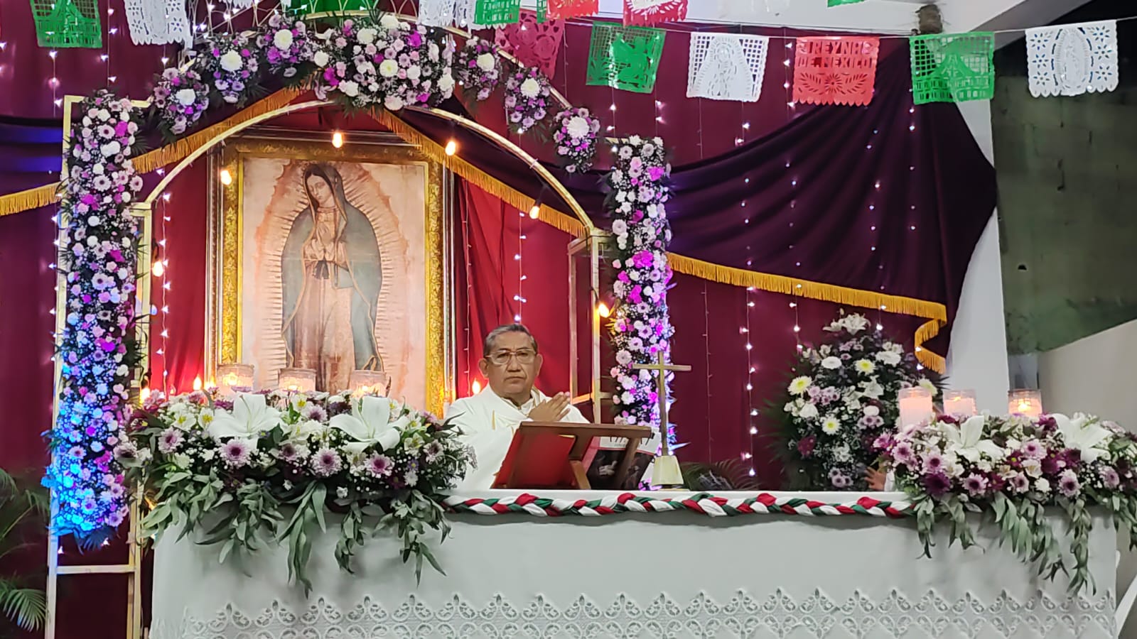 CHETUMAL, 11 de diciembre. – La noche del 11 de diciembre, en punto de las 22:00 horas, dio inicio la tradicional Misa de Gallo en honor a la Virgen de Guadalupe, celebrada en la iglesia Guadalupana de Chetumal, ubicada en la avenida Francisco I. Madero con Mahatma Gandhi. Decenas de feligreses se congregaron en el recinto para participar en una de las celebraciones religiosas más significativas para el país, en un contexto nacional marcado por tensiones sociales, violencia e incertidumbre. La liturgia fue presidida por David Martín Leal, párroco del Santuario Mariano Diocesano de Nuestra Señora de Guadalupe de Chetumal.