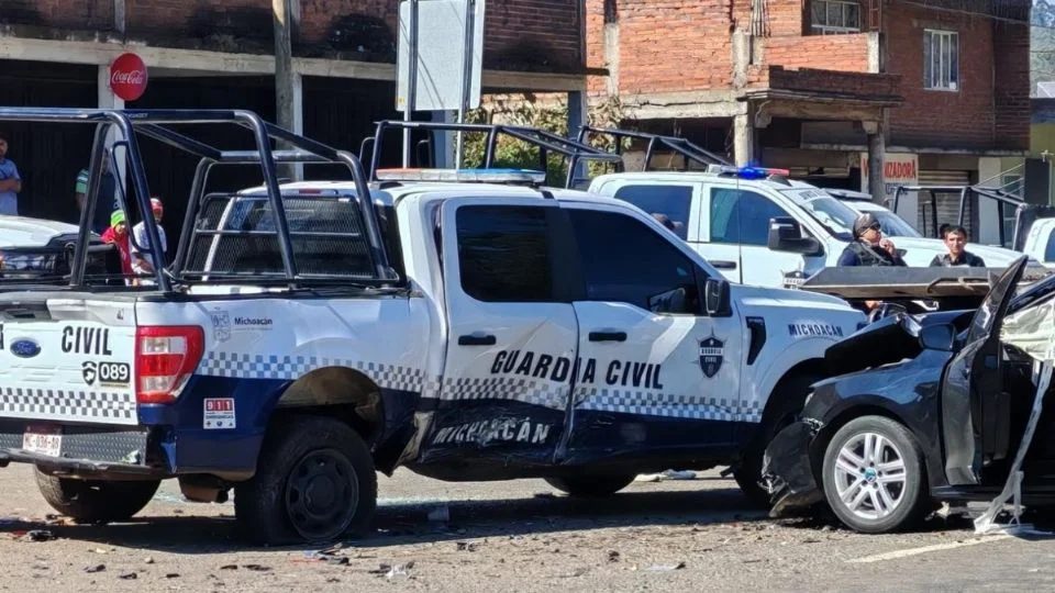 Un total de 10 personas resultaron heridas, entre ellas seis policías, tras el choque de una patrulla de la Guardia Civil (policía estatal) y un automóvil compacto, sobre la carretera federal Morelia-Pátzcuaro.