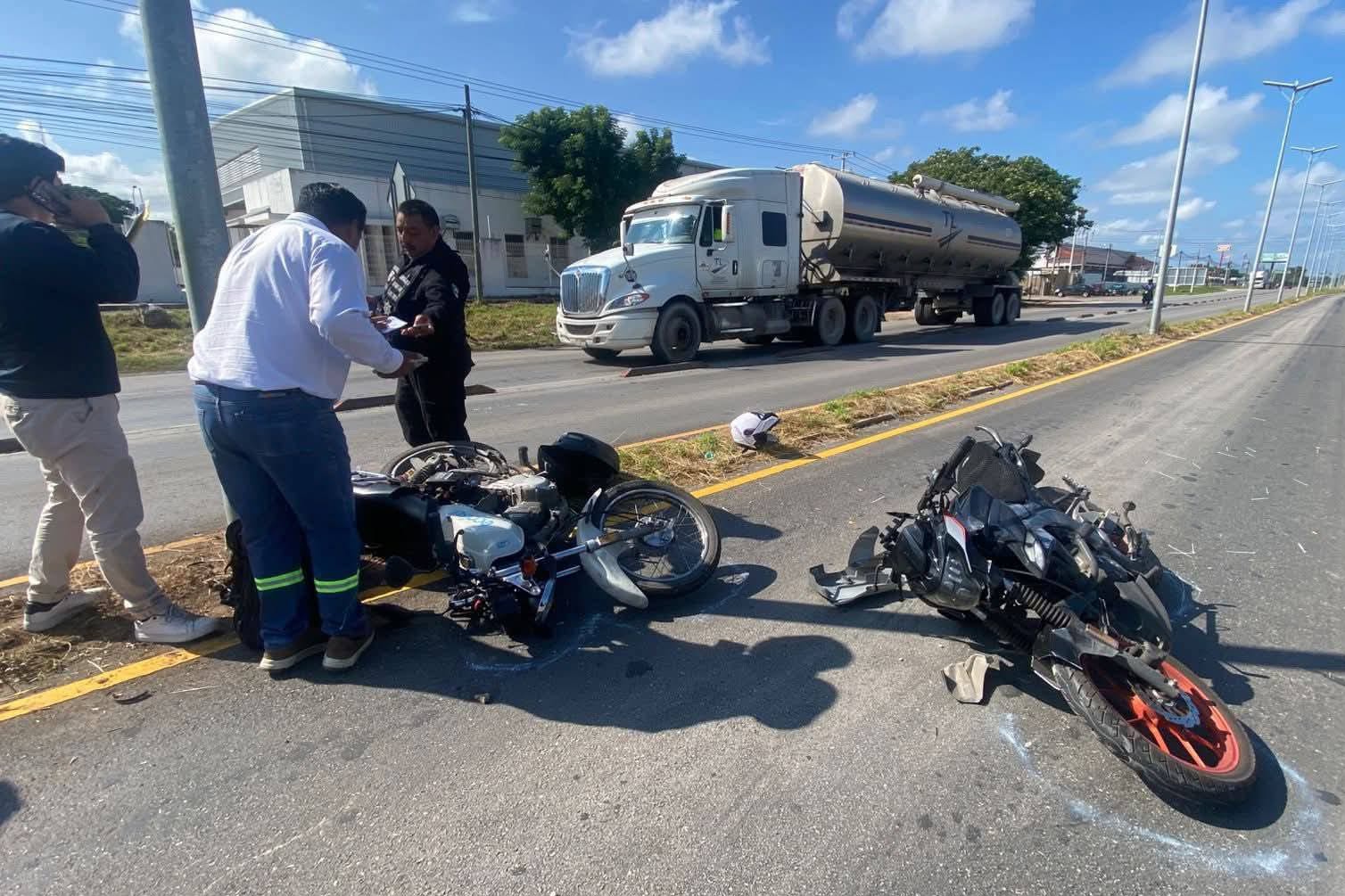 El accidente ocurrió alrededor de las 8:57 horas, cuando dos motocicletas colisionaron en el carril de circulación. De inmediato, agentes municipales acudieron al lugar para asegurar la zona y garantizar la seguridad de quienes transitaban por la vía.