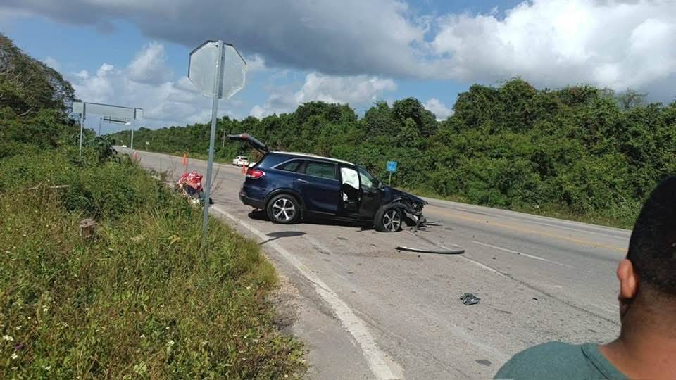 Un aparatoso accidente entre un taxi y un vehículo particular en la carretera Felipe Carrillo Puerto-Bacalar dejó como saldo tres personas lesionadas y daños materiales superiores a los 20 mil pesos