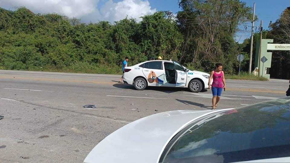 Un aparatoso accidente entre un taxi y un vehículo particular en la carretera Felipe Carrillo Puerto-Bacalar dejó como saldo tres personas lesionadas y daños materiales superiores a los 20 mil pesos