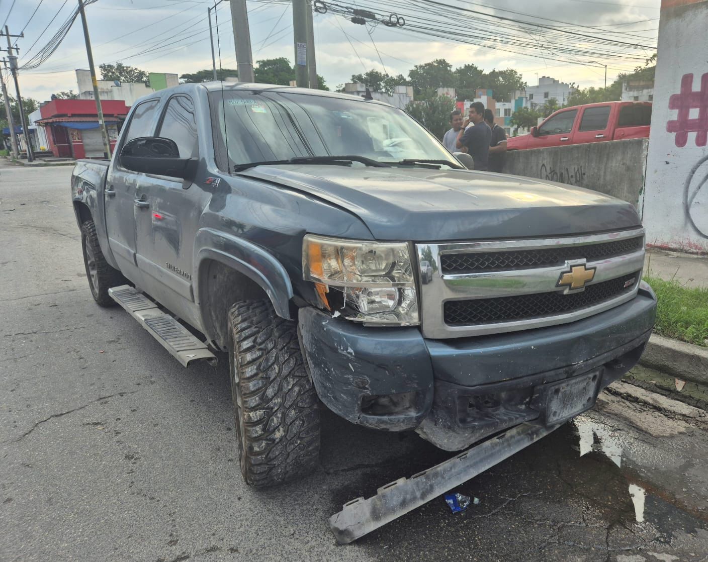 El accidente ocurrió cuando el conductor de una camioneta Chevrolet Silverado de color verde, no cedió el paso y terminó impactando contra una Volkswagen Robust blanca.