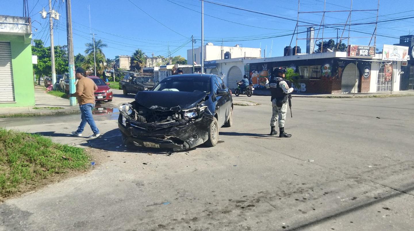 Chetumal, 10 de diciembre.- El cruce de la avenida Nápoles con Isla Cancún fue escenario de un fuerte accidente vehicular registrado la mañana de este miércoles, cuando dos unidades particulares colisionaron frente al Centro Universitario de Quintana Roo. El percance, dejó considerables daños materiales en ambos automotores, aunque no hubo personas lesionadas. La magnitud del impacto generó preocupación entre quienes transitaban por la zona, debido a la condición en la que quedaron los vehículos.