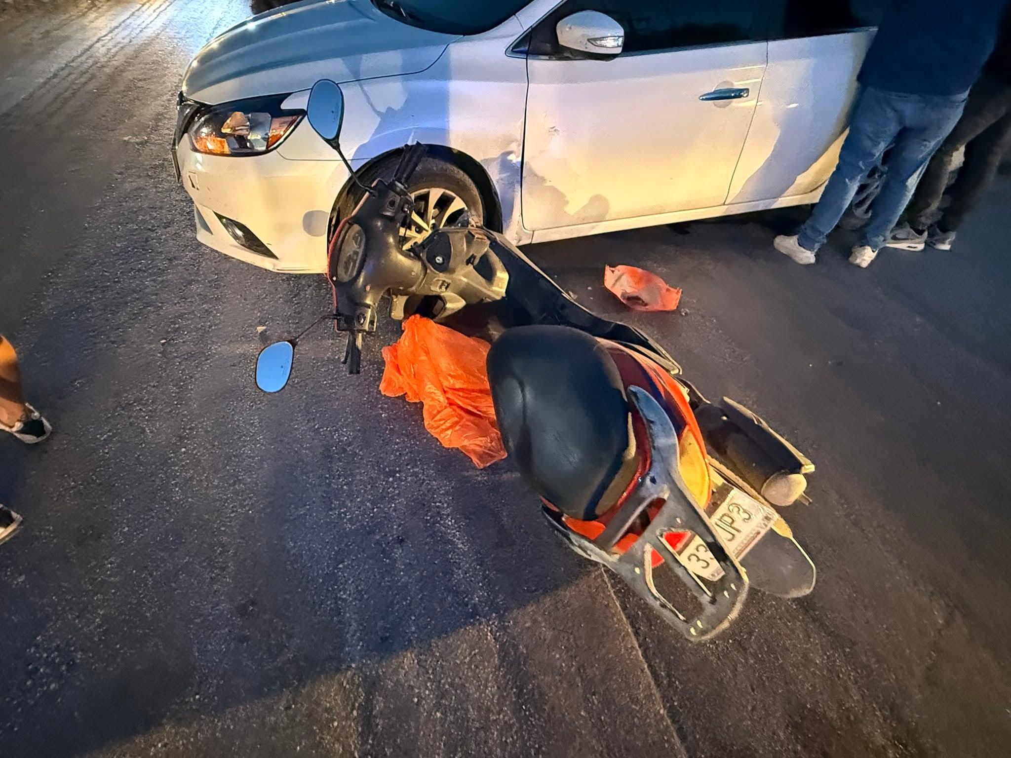 De acuerdo con los primeros reportes, el automóvil invadió la preferencia de paso de la motocicleta que ingresaba a la ciudad, lo que ocasionó el impacto.