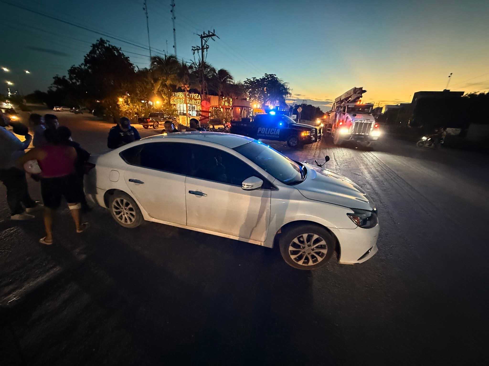 TULUM a 01 de octubre .— Un choque entre un vehículo Nissan Sentra blanco y una motocicleta en la entrada sur de Tulum dejó a una mujer lesionada y provocó un severo congestionamiento vial. El percance ocurrió en el cruce de la avenida Tulum con la avenida 5 Sur, a la altura del Gypsy Market, un punto considerado de alta incidencia de accidentes viales.