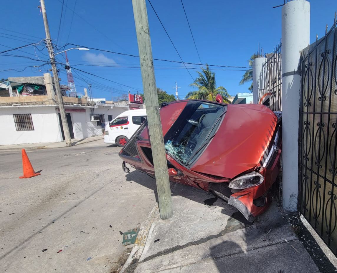 Cancún, 13 de febrero.- Un accidente de tránsito ocurrido la tarde de este jueves en la Supermanzana 76, dejó como saldo varios miles de pesos en daños materiales, luego de que uno de los vehículos involucrados terminara impactado contra la barda de un domicilio.