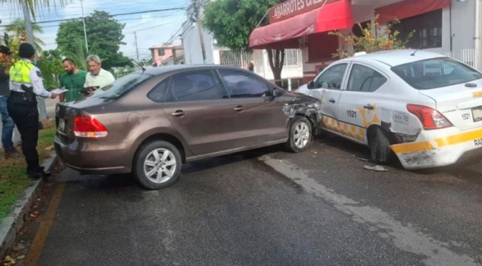 El percance se registró alrededor de las 09:00 horas sobre la calle Isla Cancún, entre Florencia y Milán, cuando el conductor de un vehículo Volkswagen Vento, color café, con placas de Quintana Roo, perdió el control del volante. De acuerdo con su versión, un perro se atravesó repentinamente en la vía, lo que lo llevó a realizar una maniobra brusca que terminó con su automóvil impactado contra un taxi del Sindicato Único de Choferes de Automóviles de Alquiler (Suchaa).