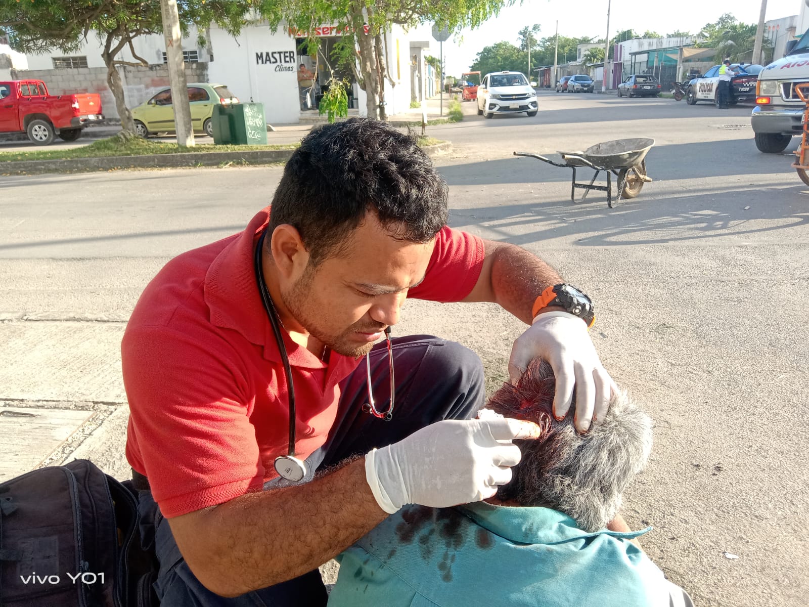 El adulto mayor resultó con una herida sangrante en el cráneo, mientras que los dos jóvenes quedaron tendidos en el camellón, reportando dolores en diversas partes del cuerpo. Ante la gravedad del hecho, se solicitó la intervención de emergencias a través del número 911.