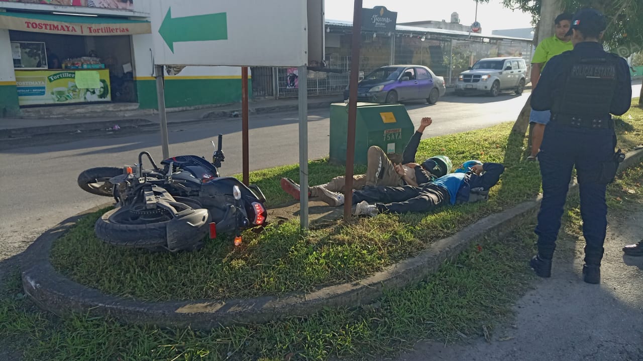 CHETUMAL, 19 de febrero.- Un fuerte accidente vehicular ocurrió esta mañana en la intersección de la avenida Pacto Obrero y la calle 10. El incidente involucró a una motocicleta conducida por un menor de edad, quien llevaba un acompañante, y un triciclo manejado por un adulto mayor. Según testigos, la motocicleta chocó contra el triciclo cuando éste intentaba cruzar la vialidad.