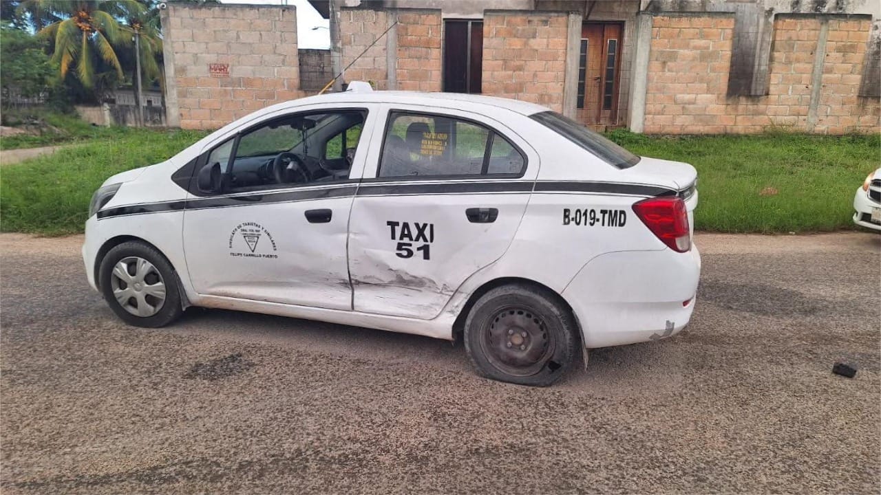 El segundo vehículo involucrado corresponde al taxi con número económico 51, que circulaba de sur a norte sobre la calle 84, vialidad con preferencia de paso. Tras la colisión, la unidad dio un giro de 180 grados y quedó en sentido contrario a su circulación.