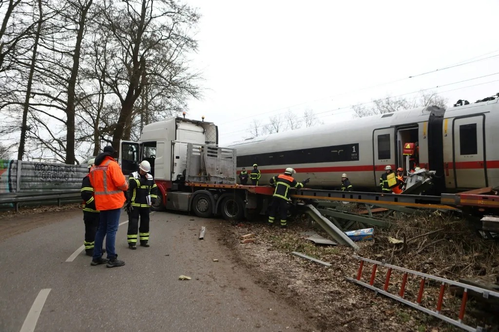 Un tren de alta velocidad colisionó con un camión cargado de material ferroviario en un paso a nivel en Hamburgo, dejando una víctima fatal y varios heridos.