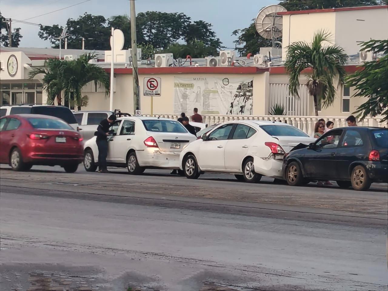 Chetumal, 25 de noviembre.- Un accidente de tránsito ocurrido la mañana de este martes en la Calzada del Centenario, a la altura del Hospital Naval, provocó un considerable congestionamiento vehicular y la movilización inmediata de autoridades de Tránsito Estatal. El percance, registrado minutos antes de las 8:00 horas, involucró a tres automóviles que circulaban por esta transitada vía de la ciudad, lo que derivó en una interrupción parcial del flujo vehicular durante varios minutos.
