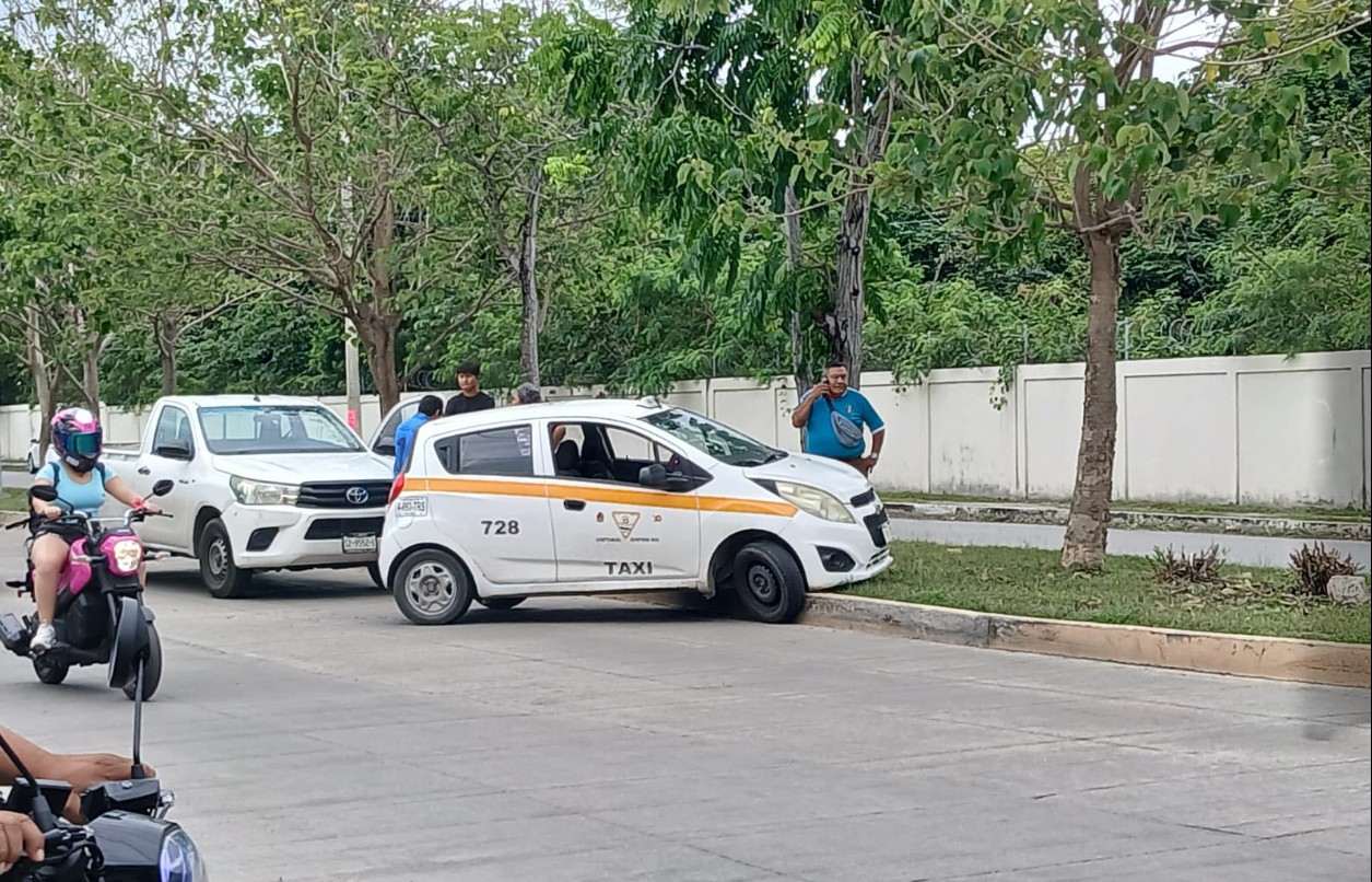 Choque por Alcance Proyecta a Taxi al Camellón Central en Chetumal