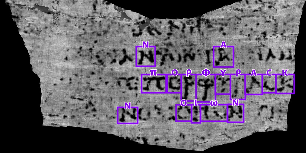 La IA, tal como está, tiene sus límites. Hasta ahora se ha descifrado poco texto. Una de las pocas palabras que se ha identificado es la antigua palabra griega para “asco”.
