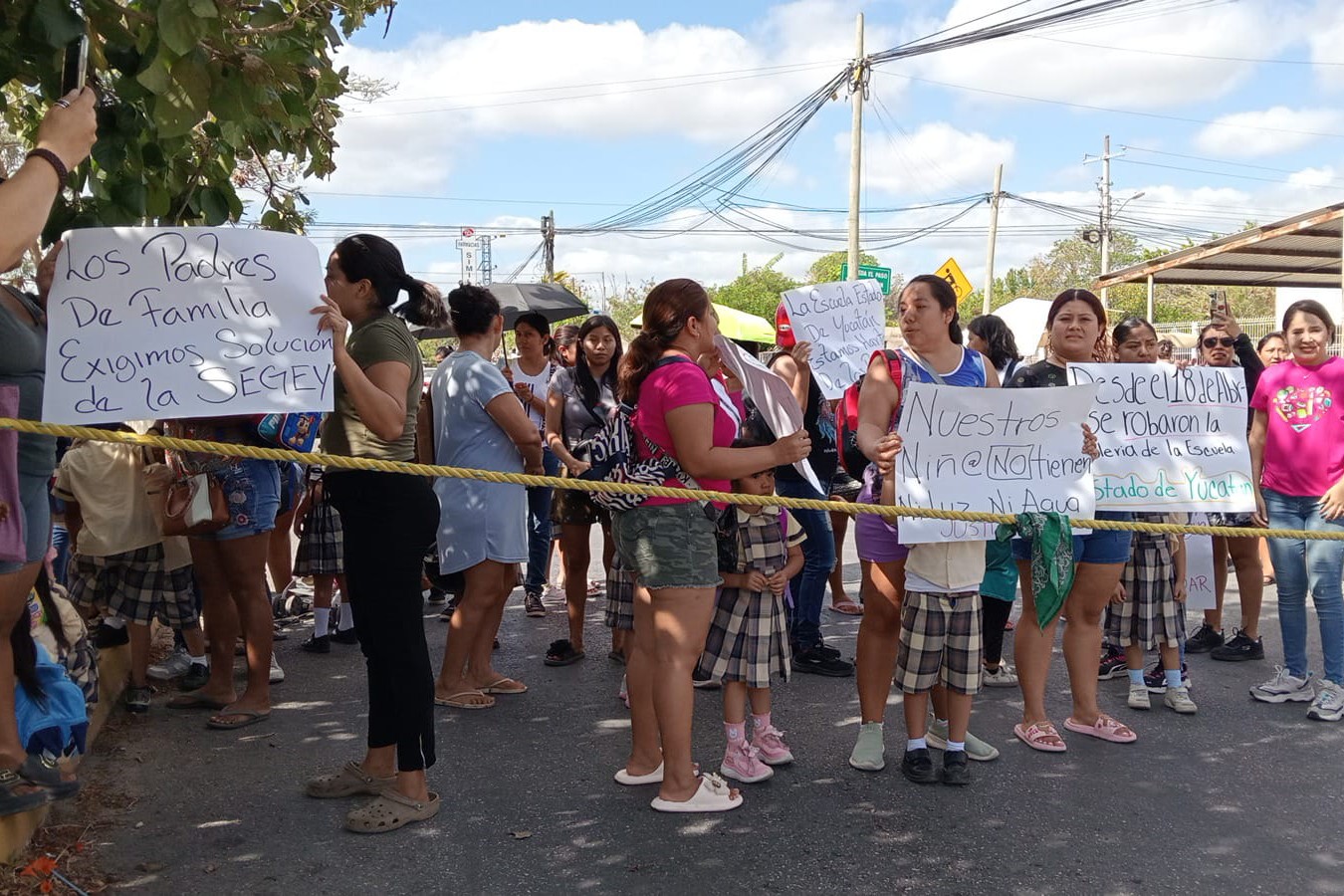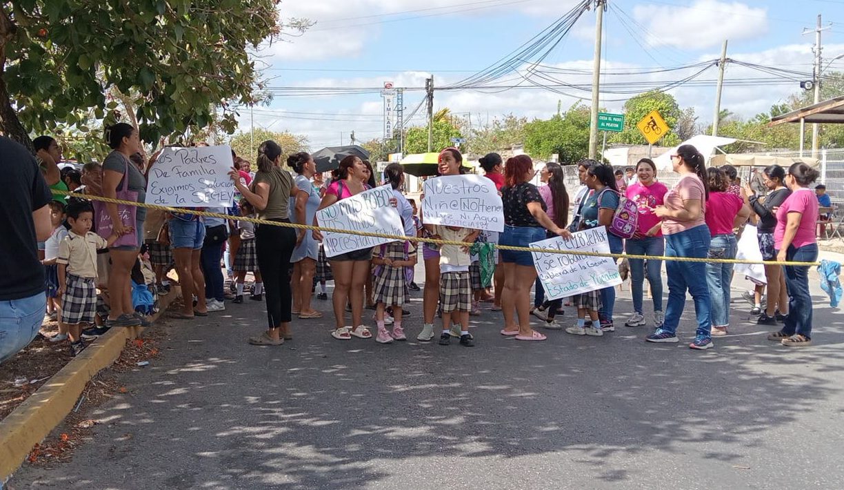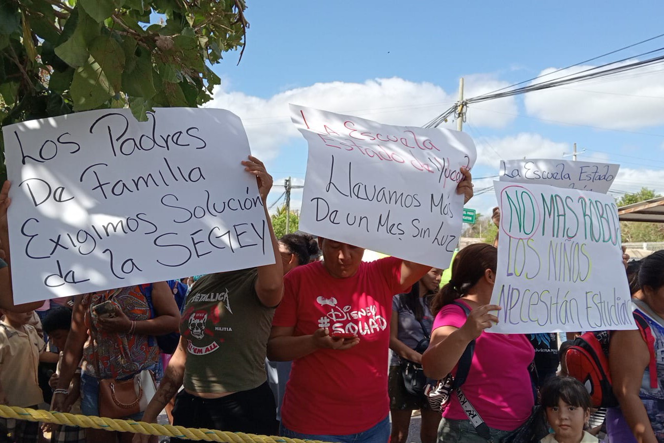 MÉRIDA, YUC., 20 de mayo.- Padres de familia del preescolar “Estado de Yucatán” bloquearon la mañana de hoy la avenida 86 esquina con calle 181 de la colonia San Antonio Xluch 3, exigiendo a las autoridades acabar con los robos al interior del plantel, ya que esta mañana descubrieron que sujetos desconocidos robaron toda la cablería del lugar.