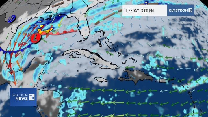 Sinopsis Meteorológica: Masa de Aire Continental Polar Modificada localizada sobre Tennessee, EUA; con su Frente Frio afectan el Área del pronóstico nos traerán un ligero descenso en las temperaturas, vientos del este y sureste de 18 a 27 con rachas de 35 kph, oleaje sobre la rada de Cozumel con lluvias ligeras a moderadas y chubascos dispersos que no serán importantes.