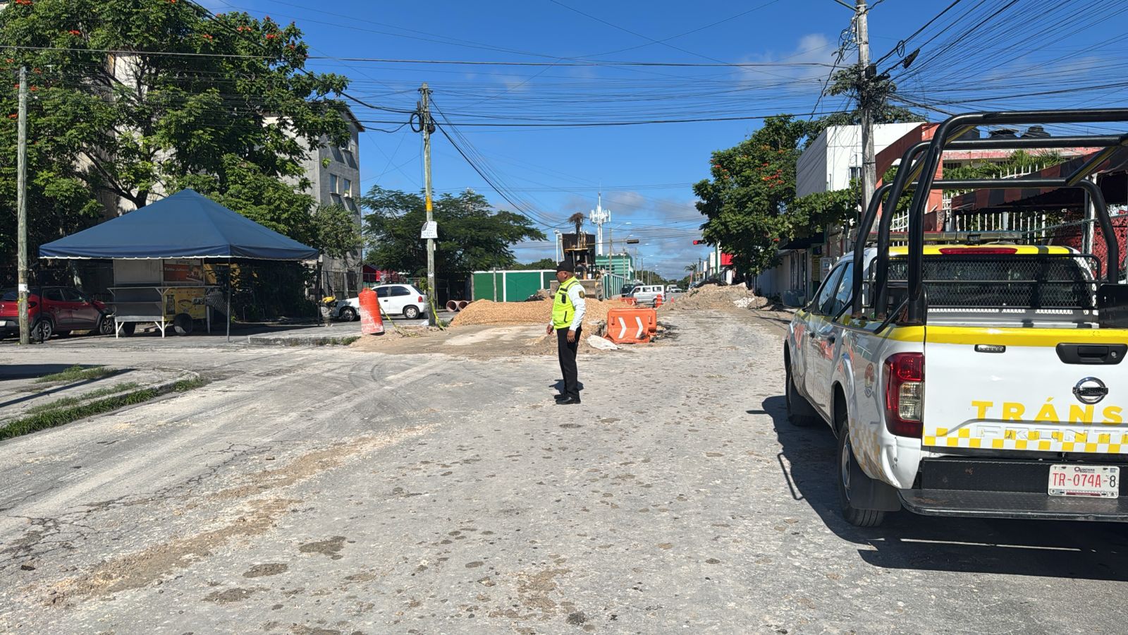 CANCÚN, 17 de enero. – Autoridades de Tránsito realizan labores de abanderamiento en la calle 71 con calle 24 Poniente de Cancún, en dirección de sur a norte, entre las avenidas José López Portillo y Francisco I. Madero, debido a trabajos de instalación de tuberías.