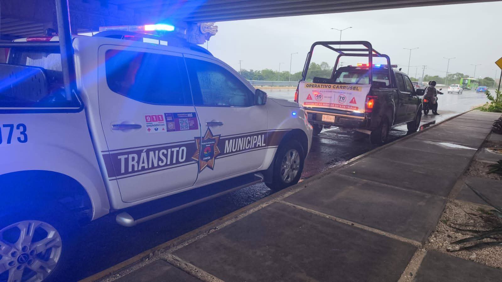 Cancún, 17 de septiembre.- Las intensas lluvias de las últimas horas han provocado importantes encharcamientos en varias zonas de la ciudad, obligando a las autoridades de Tránsito a implementar operativos de prevención y cierres viales para garantizar la seguridad de los conductores.