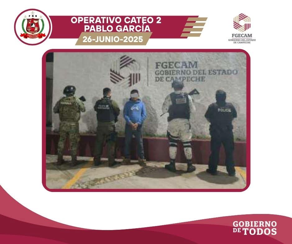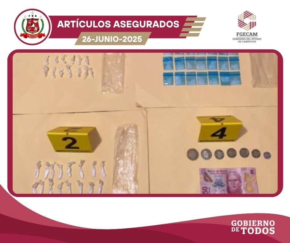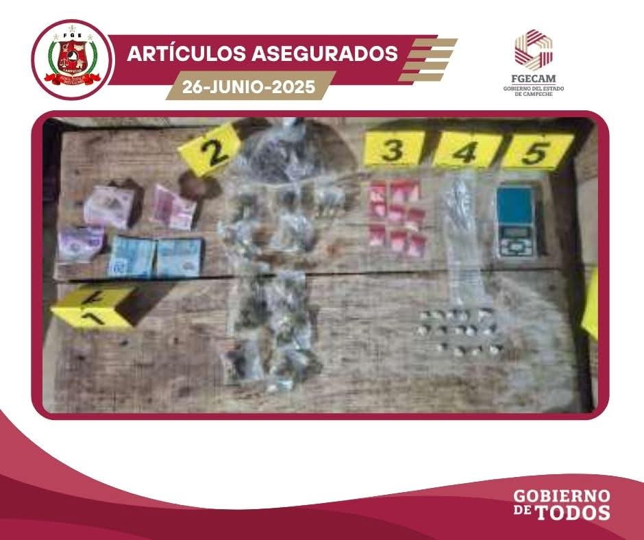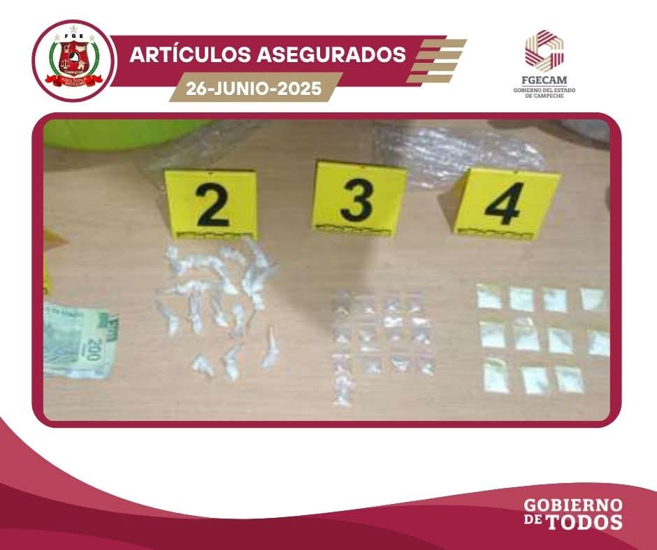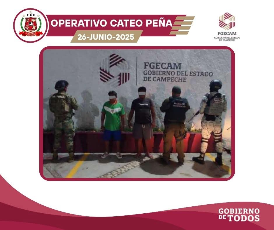 San Francisco de Campeche, Cam., 26 de junio.- La Fiscalía General del Estado de Campeche (FGECAM) informa que, en la madrugada de este jueves, elementos de la Agencia Estatal de Investigaciones, adscritos a la Fiscalía Especializada en Delitos de Narcomenudeo, llevaron a cabo tres cateos simultáneos en inmuebles ubicados en las colonias Pablo García y La Peña, en la ciudad capital.