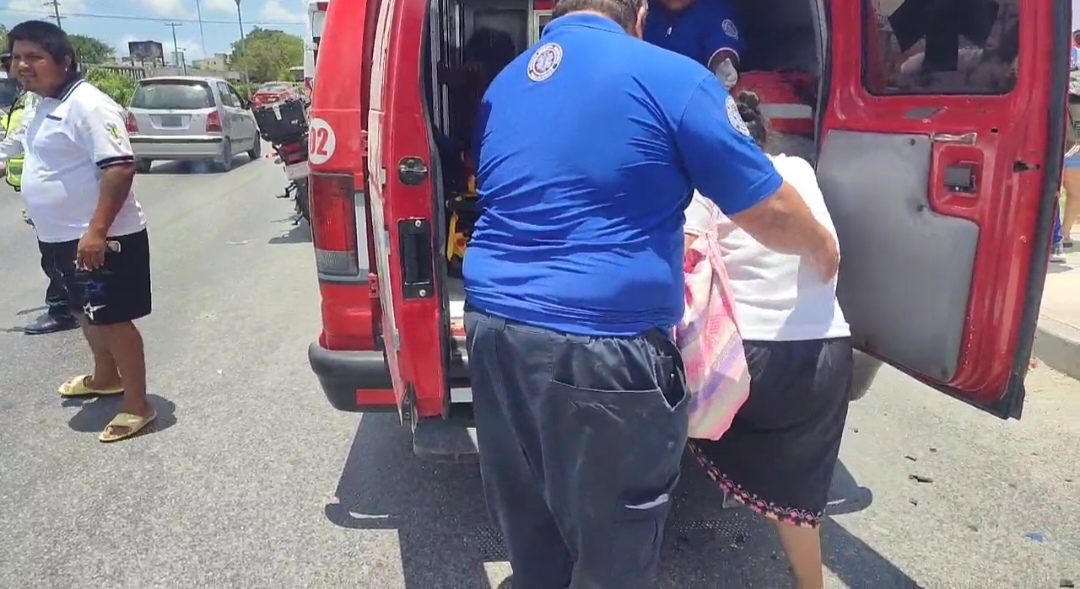 Cancún, 19 de mayo.— Un accidente de tránsito ocurrido la tarde de este lunes en la Supermanzana 99, dejó como saldo cinco personas lesionadas, luego de que dos vehículos colisionaran en el cruce de la avenida José López Portillo con la calle 155.