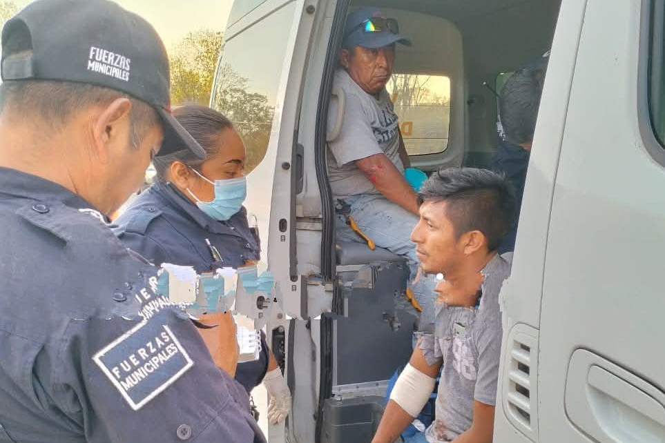Al lugar arribaron paramédicos de la SSP que atendieron a dos lesionados con fracturas en los brazos y los de la Policía Municipal a los restantes por golpes y excoriaciones en diversas partes del cuerpo. Arribaron elementos de la Policía Municipal de Motul y de la SSP que se hacen cargo del accidente dirigiendo el tránsito para evitar un choque, la camioneta quedó ocupando un carril.