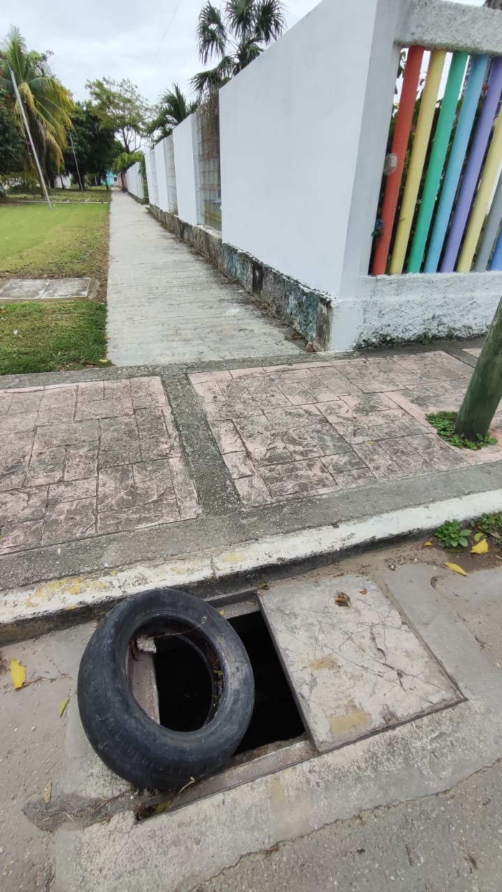 Uno de los señalamientos más graves provino de la ciudadana Rosy Ibarra, quien advirtió —como ya lo ha hecho en repetidas ocasiones— que una alcantarilla ubicada en la avenida Insurgentes, frente al tanque elevado de Fovissste 3ª etapa, se encuentra nuevamente destapada. Los vecinos han tenido que colocar llantas para evitar accidentes, pero la solución municipal es provisional y dura apenas unos días antes de que vuelva el riesgo. Se trata, además, de un punto crítico: es la ruta de entrada y salida de niñas y niños del jardín de niños Insurgentes y de la primaria Andrés Quintana Roo.
