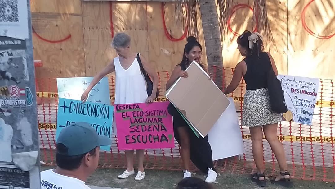 Los inconformes señalaron que la obra, ubicada en la orilla del cuerpo lagunar, carece de los permisos ambientales necesarios, lo que pone en riesgo el delicado ecosistema del lugar.