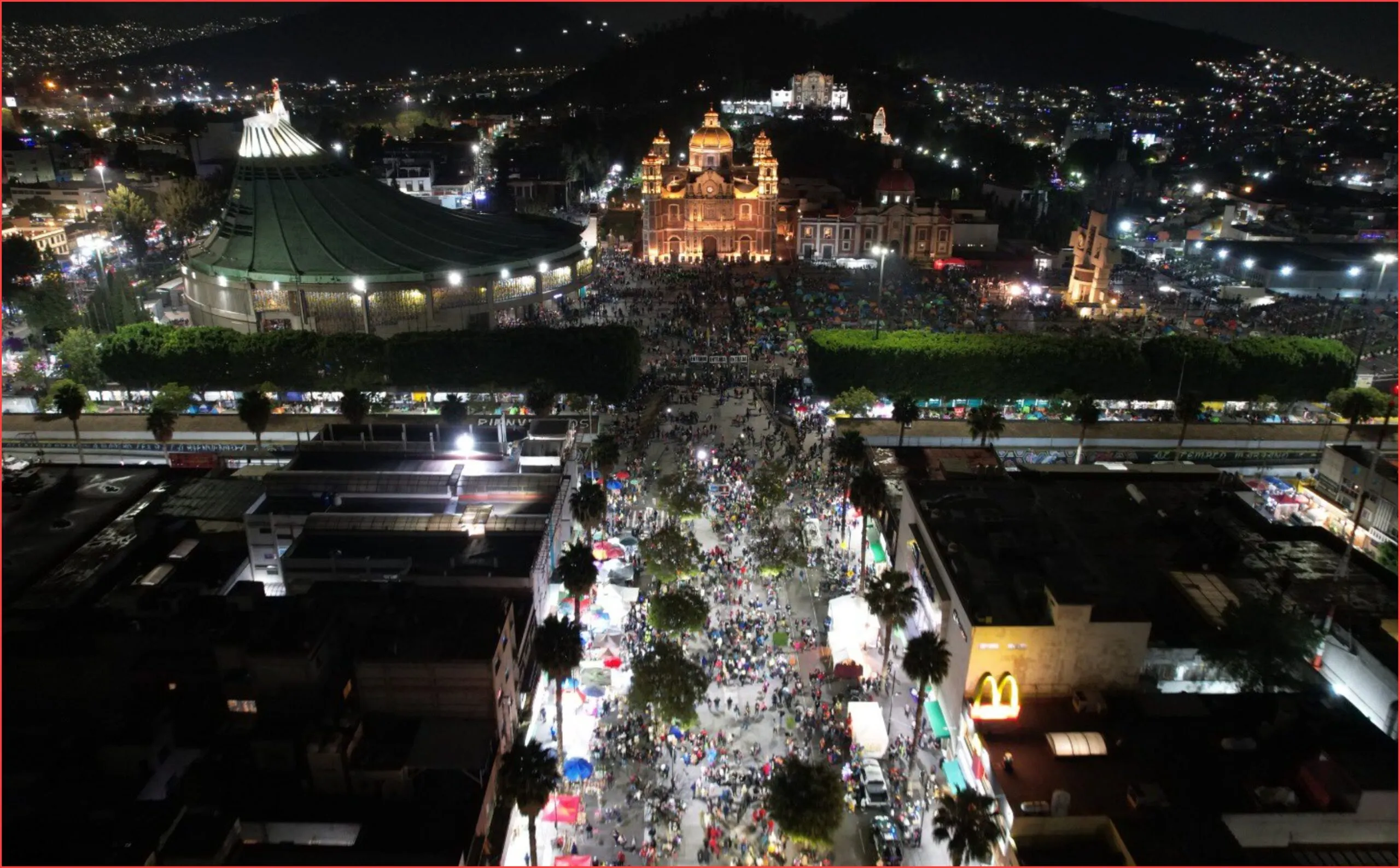 La jefa de Gobierno de la Ciudad de México, Clara Brugada, informó al corte de las 9:15 de la mañana de este 12 de diciembre que 11.5 millones de peregrinos habían visitado la Basílica de Guadalupe, ubicada en la alcaldía Gustavo A. Madero, reportando un saldo blanco.