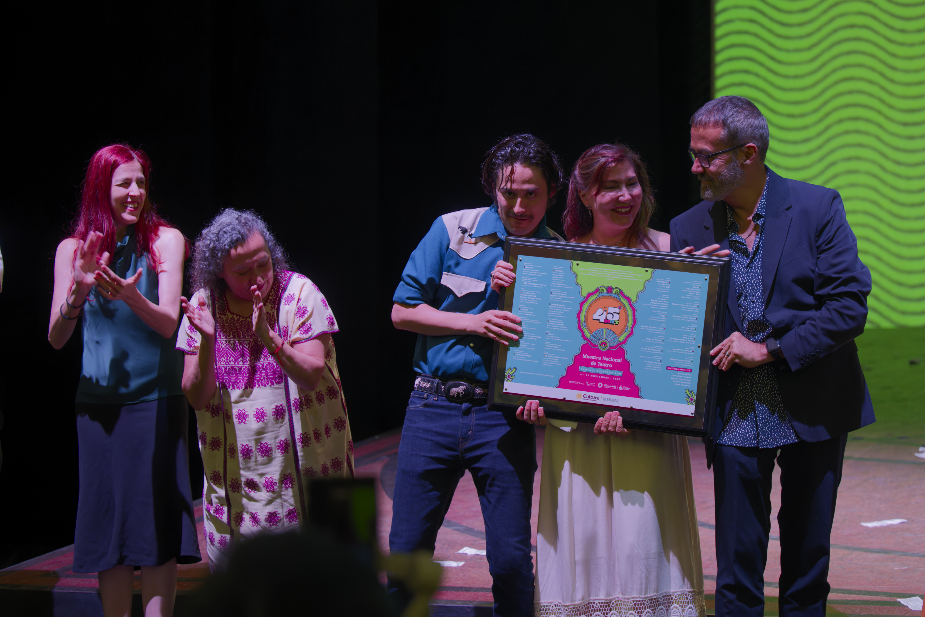 También agradeció a todas las compañías de los 17 estados participantes; intérpretes; directoras y directores; equipos creativos, técnicos, de producción y de logística, y destacó la presencia de las y los 32 jóvenes participantes del programa Jóvenes a la Muestra, que representaron a cada uno de sus estados. Mencionó especialmente al Gobierno del Estado de Quintana Roo, al municipio de Benito Juárez y al Instituto de la Cultura y las Artes por su profesionalismo y generosidad con todos los equipos de trabajo, artistas y compañías.