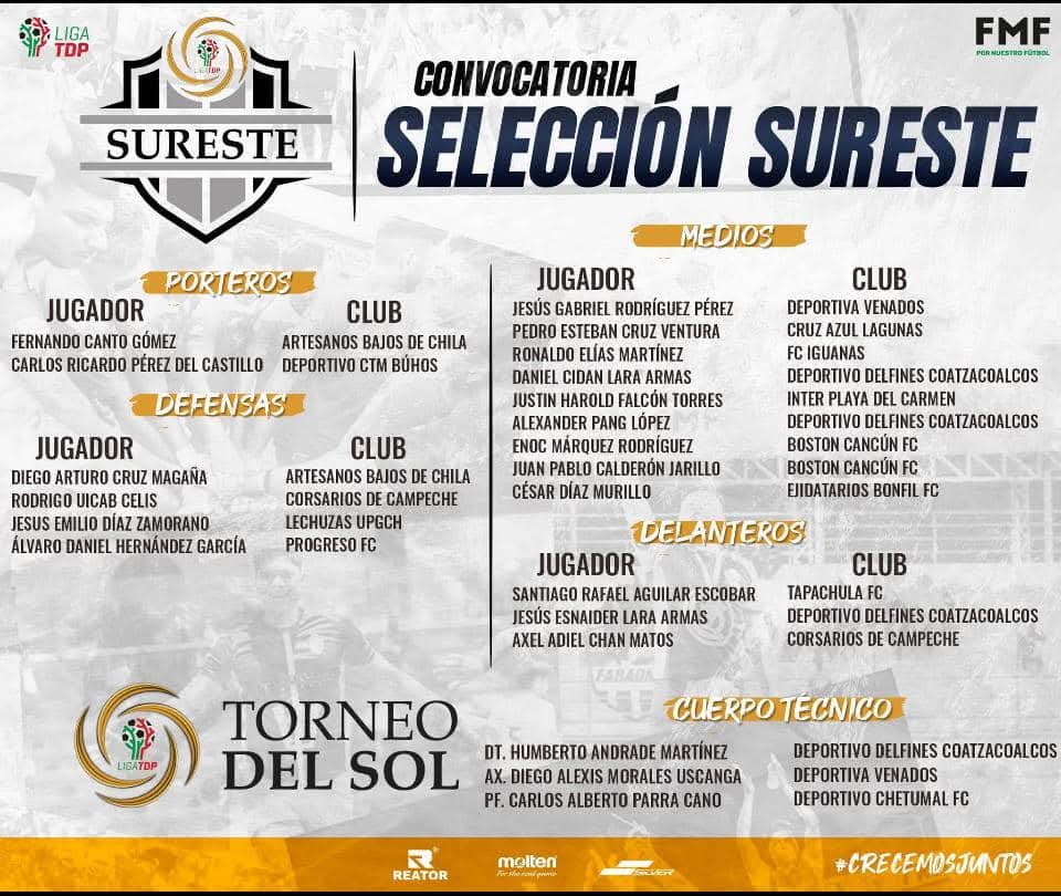 A continuación presentamos la lista de jugadores que conformarán la Selección Sureste en el Torneo del Sol: