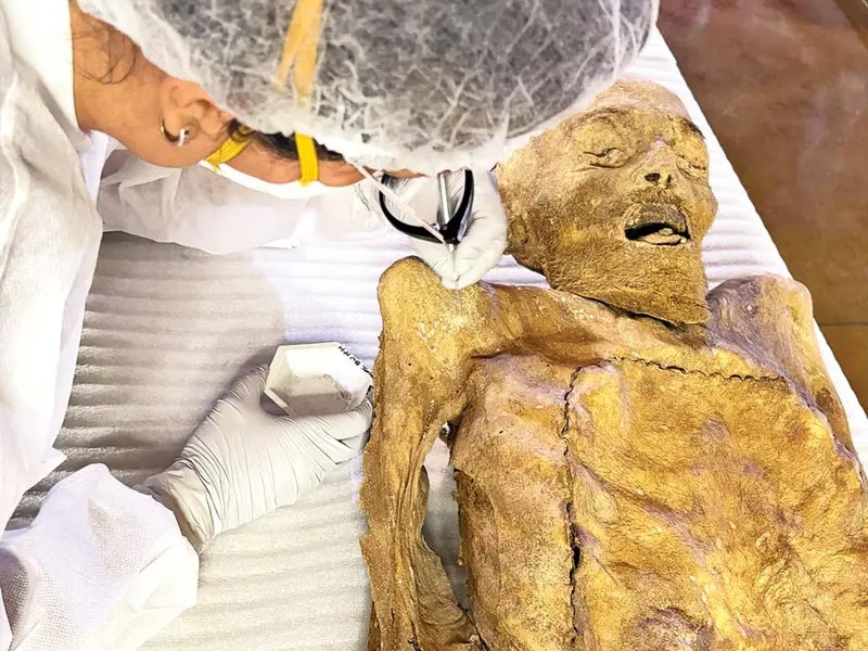 “Si hubo modificaciones en cuanto a la totalidad de sus componentes, posiblemente fue anterior a que nos acercáramos de manera profesional a la serie de restos momificados”, aclara. La especialista también es cuestionada sobre los daños en una o dos momias, en 2024, durante un reciente cambio en la museografía. Sin embargo, considera que no se puede determinar el origen de la afectación.