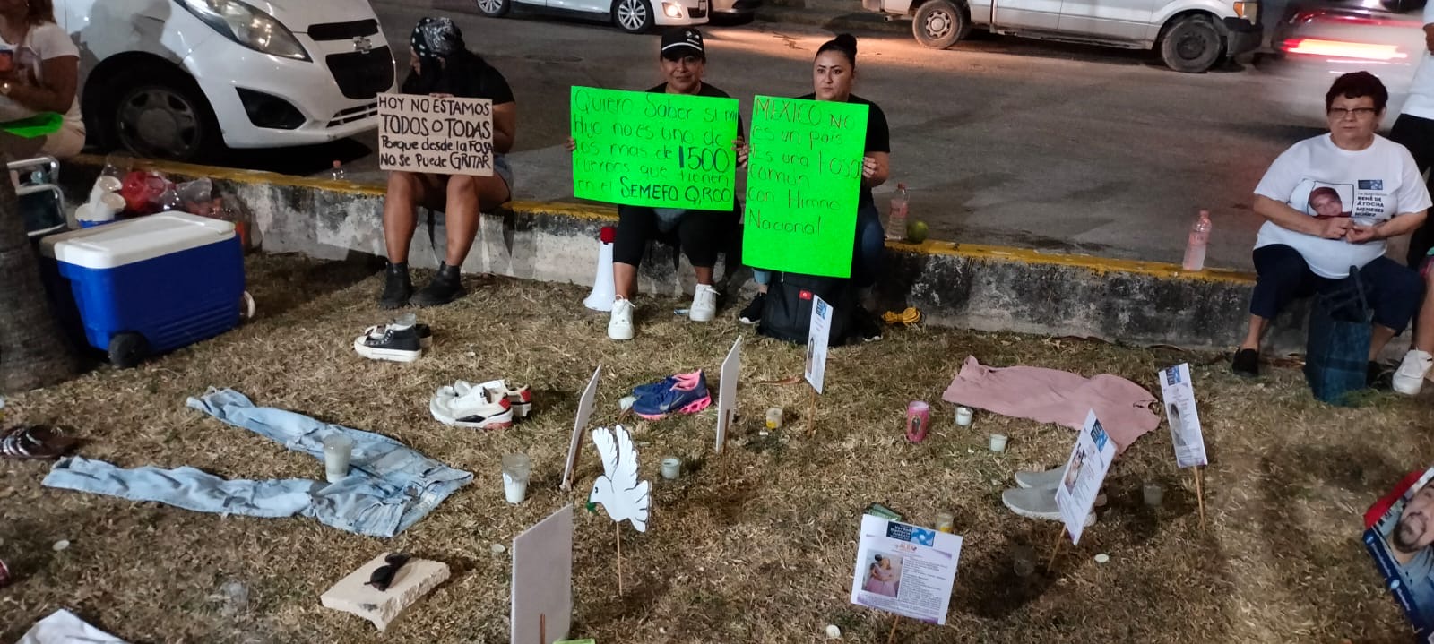 Cancún, Q. Roo, 15 de Marzo.- Miembros del colectivo Verdad, Memoria y Justicia, se unieron al luto nacional en Cancún, en solidaridad por el presunto hallazgo de crematorios en un predio de Teuchitlán, Jalisco.