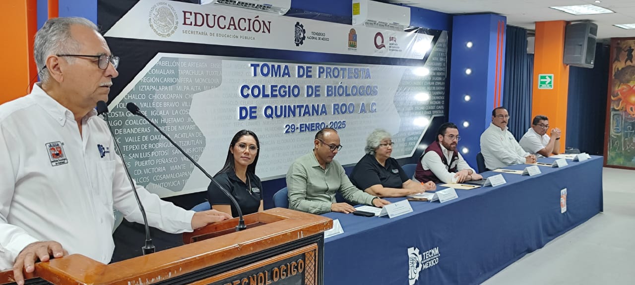 CHETUMAL, 29 de enero. – En un acto protocolario realizado en el anexo de la Biblioteca del Tecnológico de Chetumal, el nuevo Consejo Directivo del Colegio de Biólogos de Quintana Roo A.C. para el periodo 2025-2027 rindió protesta oficial. La ceremonia contó con la presencia de directivos y alumnos del plantel y autoridades estatales, quienes atestiguaron el compromiso de la nueva dirigencia para promover y fortalecer la profesión en el estado.