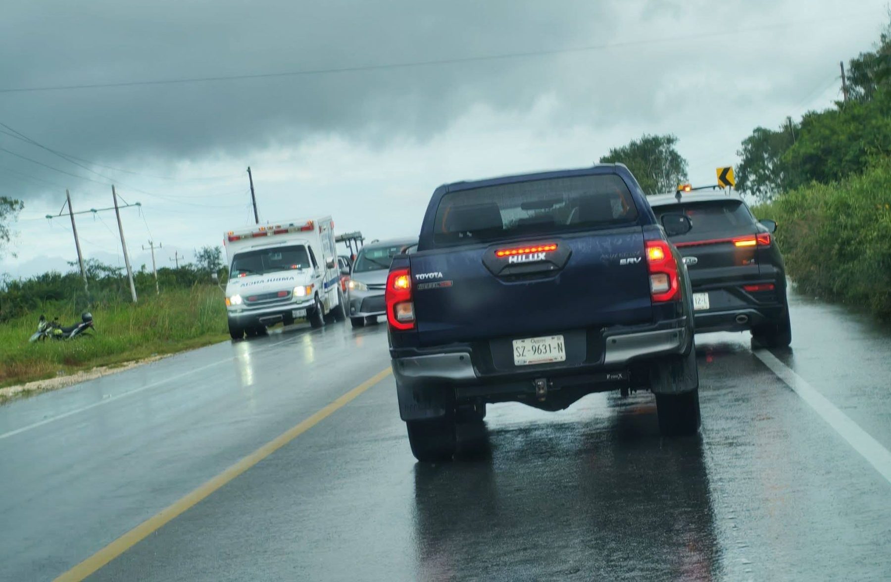 El informe recabado en el sitio indica que la motocicleta comenzó a perder capacidad de frenado antes de la entrada al poblado. Al tomar la desviación principal de Ucum, el conductor ya no logró detener la unidad, que terminó deslizándose varios metros hasta derrapar. La fuerza del impacto no dejó a personas atrapadas, pero sí a la pasajera con golpes, abrasiones y dolor agudo, por lo que el acompañante solicitó apoyo inmediato vía 911.