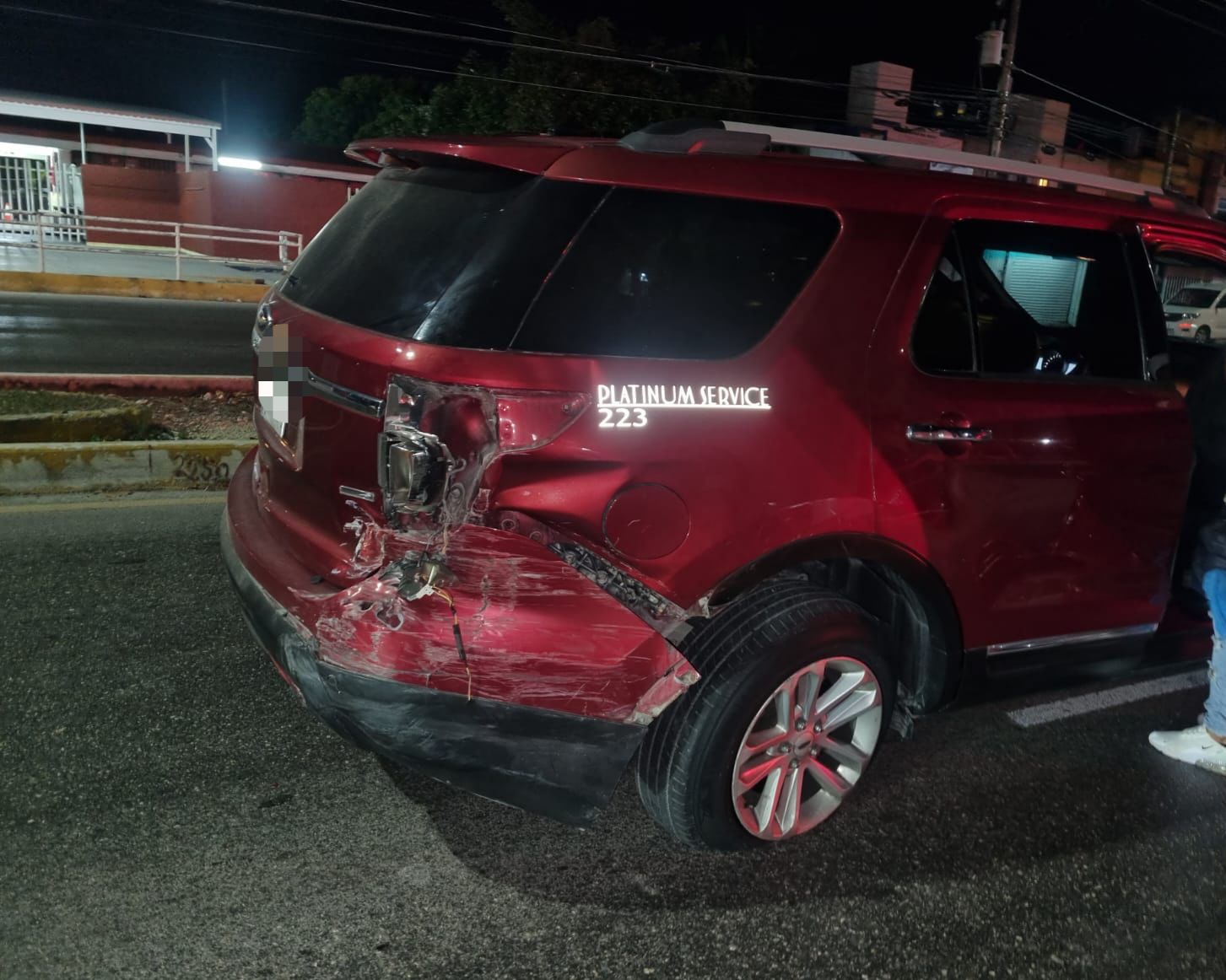 El percance ocurrió alrededor de la 01:50 horas, cuando una camioneta Jeep Parriot de color gris circulaba en dirección oriente-poniente y, al no guardar la distancia de seguridad, chocó contra una Ford Explorer roja que transitaba en la misma dirección.