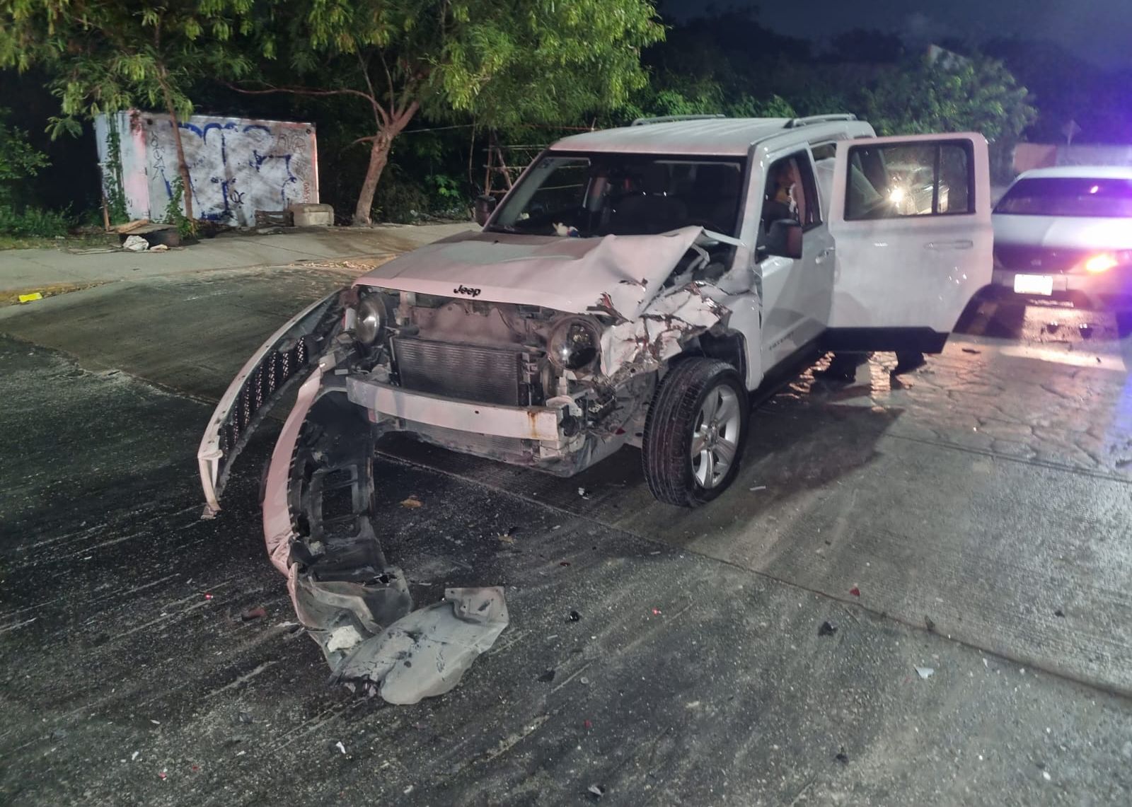 CANCÚN, 17 de febrero.- Un accidente de tránsito registrado en la madrugada de este lunes, dejó como saldo dos mujeres lesionadas luego de que una camioneta impactara a otro vehículo en la avenida Nichupté, a la altura de la Región 99.
