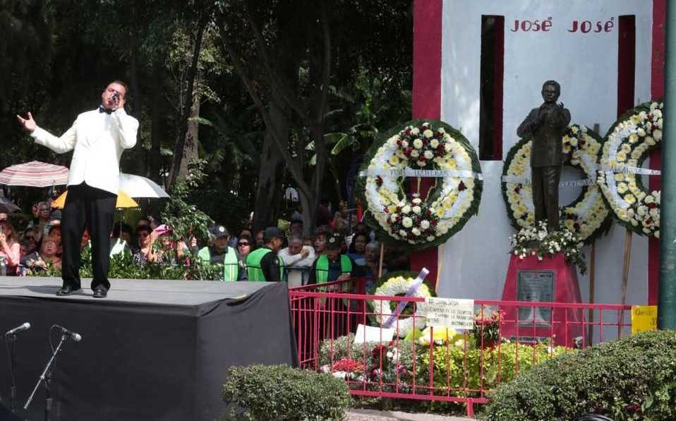 Frente de la rotonda donde luce la estatua de José José en el Parque de La China en Clavería, cientos de personas se reunieron la tarde este sábado para recordar al “Príncipe de la canción”, un día antes de su sexto aniversario luctuoso.