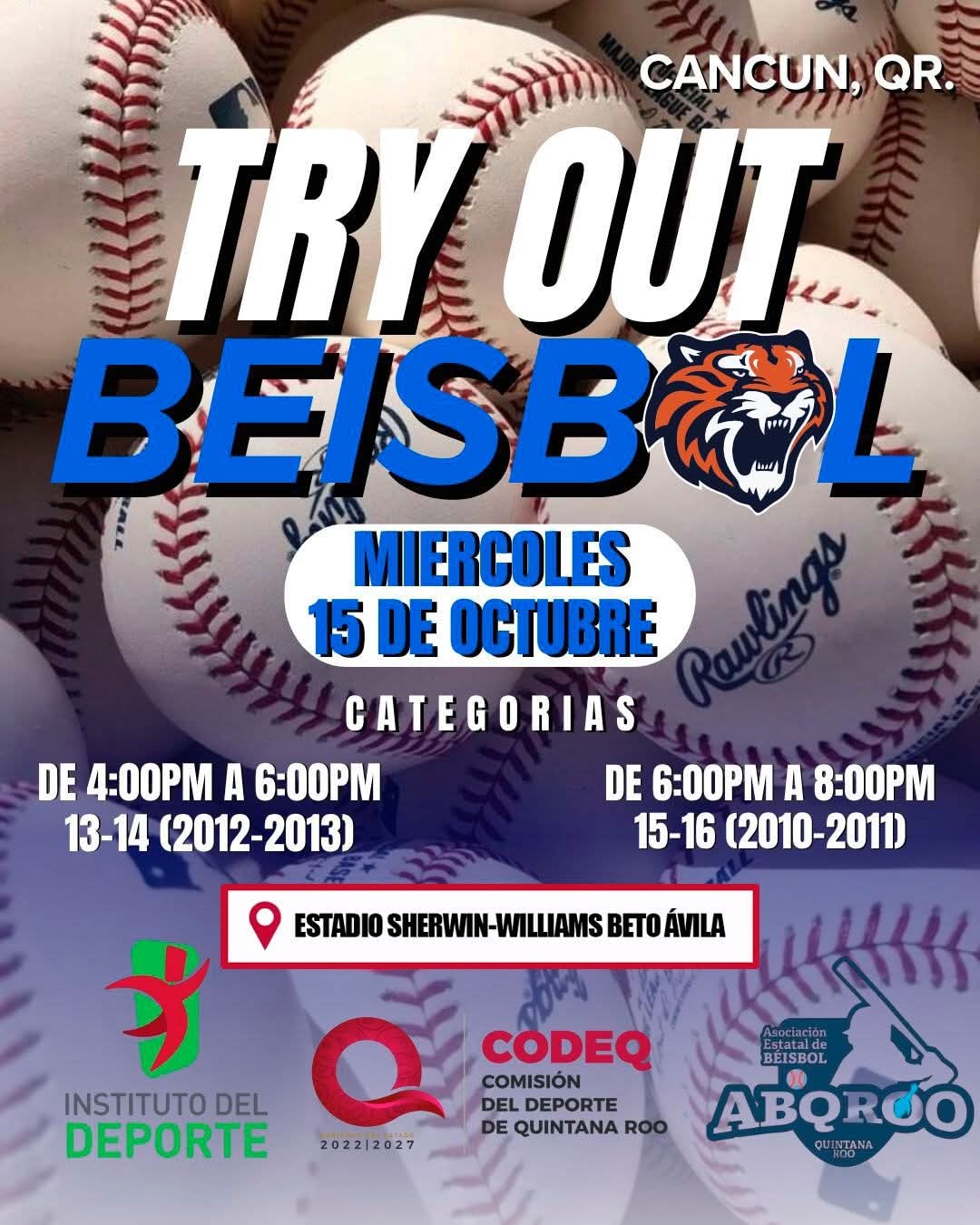 Abel Fernández, responsable de la Asociación Estatal de Beisbol de Quintana Roo, lanzó la convocatoria para Cancún (BJ), por lo que se espera la presencia de un nutrido números de peloteros en el Estadio “Sherwin Williams Beto Ávila” de la SM 21, lugar elegido para estas pruebas, contando desde luego con el respaldo de los Tigres de Quintana Roo, quienes incluso aportarán la experiencia de sus coaches Arnoldo “Kiko” Castro y Alejandro “Shaggy” Sánchez.