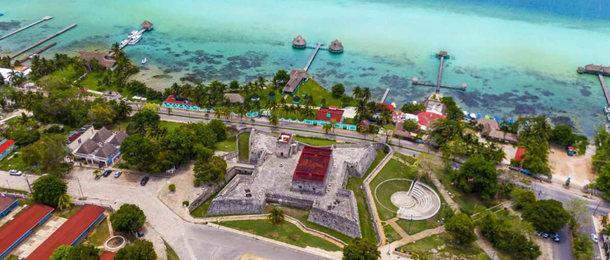 • Ubicado a orillas de la laguna de los Siete Colores, el Fuerte de Bacalar fue construido en 1733, a instancias del gobernador de la entonces Capitanía general de Yucatán, Antonio de Figueroa y Silva Lazo de la Vega, con el propósito de controlar el avance de los asentamientos ingleses en la frontera sur novohispana