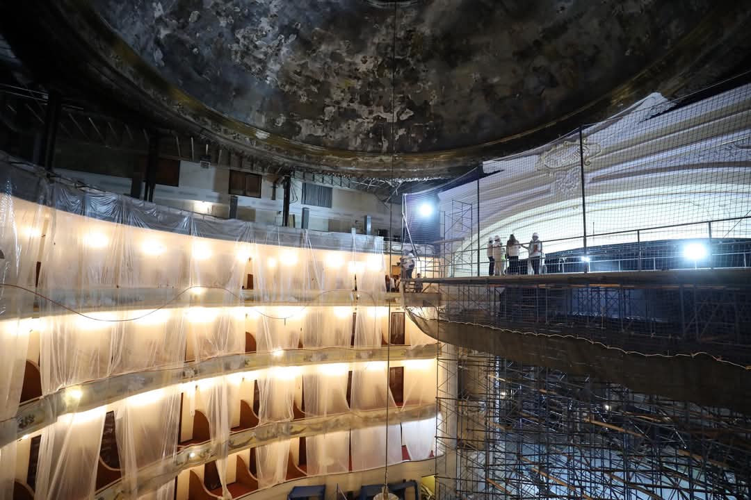 MÉRIDA, YUC.- 04 de febrero.- Este martes ser revelaron las primeras imágenes del interior del Teatro José Peón Contreras durante los trabajos de reconstrucción y rehabilitación, el cual se encuentra cerrado desde el año 2022 debido a un incendio que provocó graves daños materiales en el edificio.