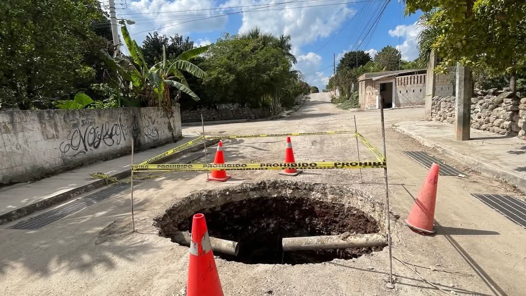 El socavón mide cinco metros de profundidad y según lo indicado por los trabajadores del área de servicios públicos del Ayuntamiento de Tizimín, podría llevarles varios días de trabajo, por lo que piden a la población respetar los señalamientos para prevenir accidentes durante las labores de reparación.