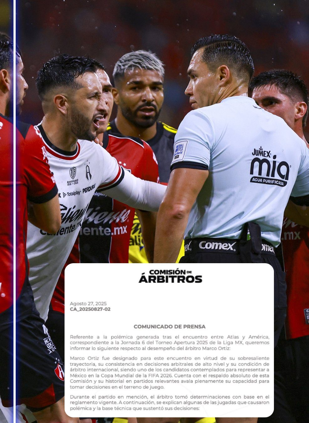 La Comisión de Árbitros de la Federación Mexicana de Futbol (FMF) respaldó el trabajo de Marco Antonio Ortiz, luego de las criticas generadas en relación a su trabajo del fin de semana en el encuentro entre América y Atlas que ha sido motivo de debate entre la opinión pública.