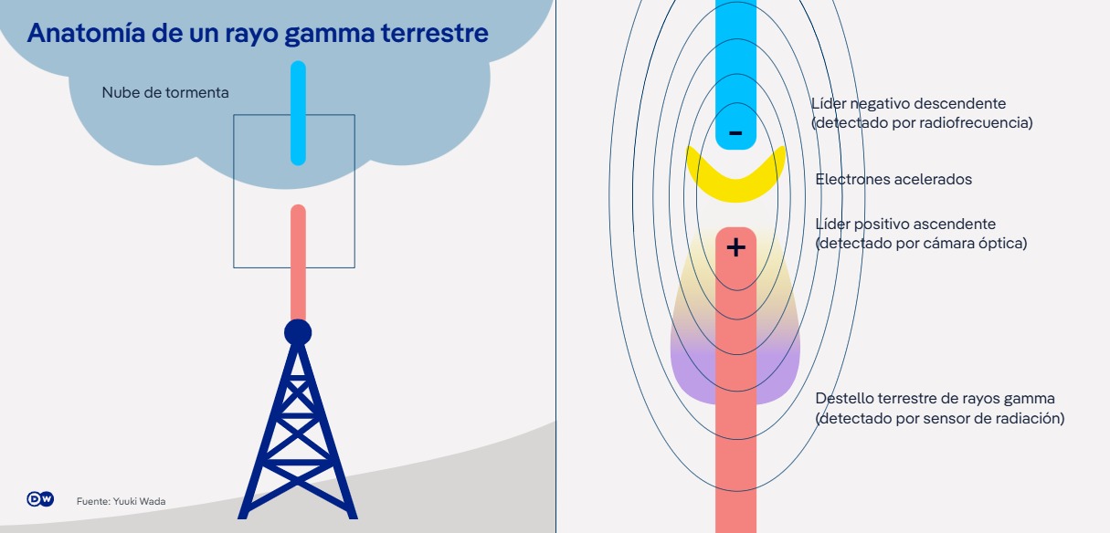 En el preciso momento antes de la colisión, a unos 800 metros de altura, el sistema detectó algo extraordinario. Exactamente 31 microsegundos antes del encuentro entre las dos corrientes –según un comunicado de prensa de la Universidad de Osaka– surgió el primer fotón de rayos gamma. El estallido completo duró apenas 20 microsegundos después de que se formara el rayo definitivo.